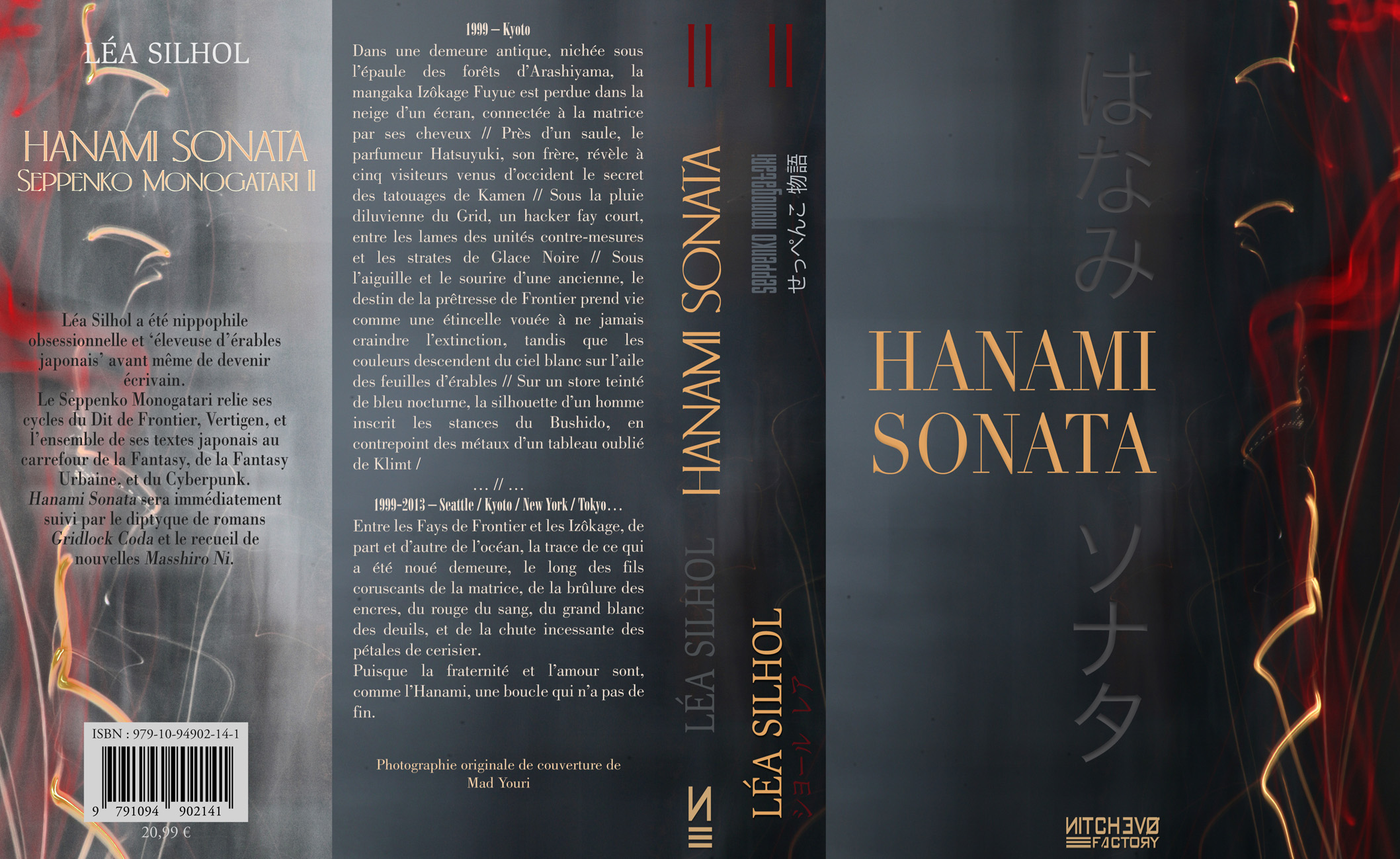 Dans une demeure antique, nichée sous l’épaule des forêts d’Arashiyama, la mangaka Izôkage Fuyue est perdue dans la neige d’un écran, connectée à la matrice par ses cheveux // Près d’un saule, le parfumeur Hatsuyuki, son frère, révèle à cinq visiteurs venus d’occident le secret des tatouages de Kamen // Sous la pluie diluvienne du Grid, un hacker fay court, entre les lames des unités contre-mesures et les strates de Glace Noire // Sous l’aiguille et le sourire d’une ancienne, le destin de la prêtresse de Frontier prend vie comme une étincelle vouée à ne jamais craindre l’extinction, tandis que les couleurs descendent du ciel blanc sur l’aile des feuilles d’érables // Sur un store teinté de bleu nocturne, la silhouette d’un homme inscrit les stances du Bushido, en contrepoint des métaux d’un tableau oublié de Klimt /